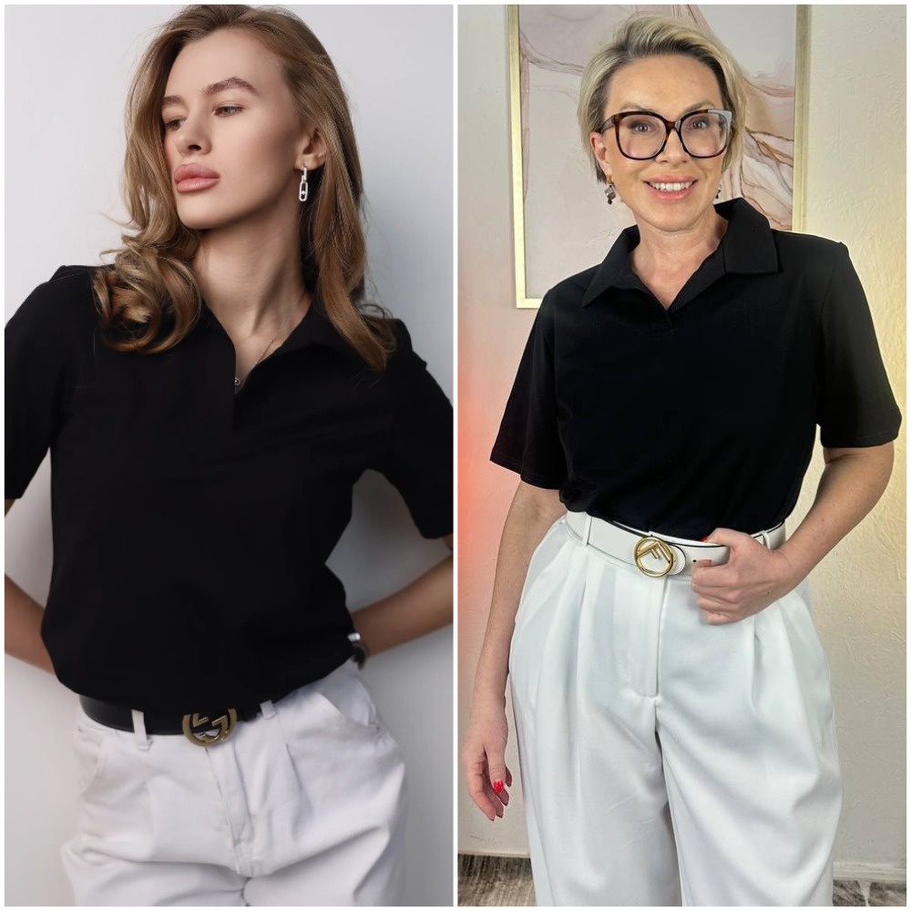 Здравствуйте, дорогие читатели! Меня зовут Ирина, я - стилист, и на этом канале показываю одежду и аксессуары с Wildberries такими, как они есть, то есть, из серии "ожидание/реальность". Мои параметры: рост 169 см, вес 67 кг, 94-74-100 ✅Основной канал: Стильно - не значит дорого! Ставьте лайк в поддержку канала, и давайте смотреть на мою сегодняшнюю покупку. Черная футболка-поло: лаконичный шик Эта модель в черном цвете сочетает в себе спортивную непринужденность и классическую строгость. Свободный крой из хлопкового трикотажа с эластаном обеспечивает комфорт, сохраняя опрятный вид. Отложной воротник и V-образный вырез горловины создают сдержанный акцент. Плотная ткань не просвечивает и хорошо держит форму. Отсутствие застежки и мягкая структура материала делают футболку удобной для длительной носки. Универсальная длина позволяет носить ее навыпуск или заправленной. Конструктивные преимущества: Футболка демонстрирует редкую многофункциональность. Она одинаково уместна с деловыми брюкам