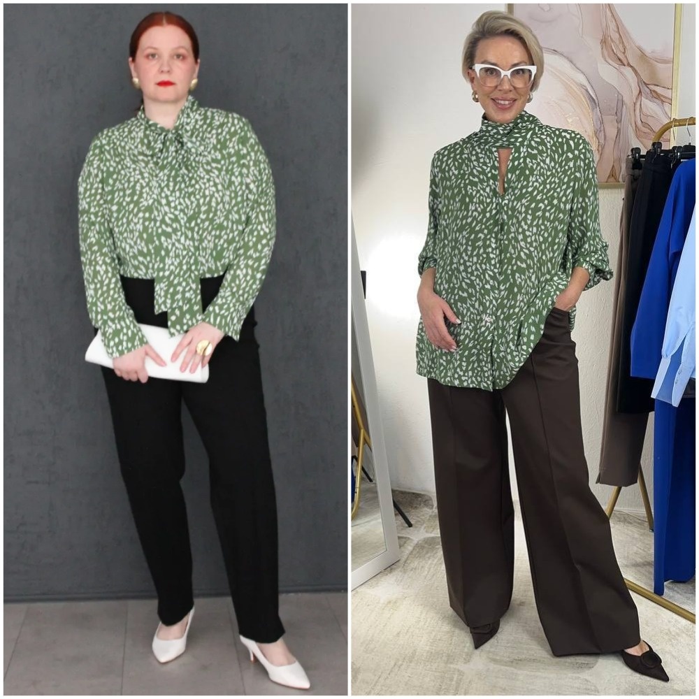 Здравствуйте, дорогие читатели! Меня зовут Ирина, я - стилист, и на этом канале показываю одежду и аксессуары с Wildberries такими, как они есть, то есть, из серии "ожидание/реальность". Мои параметры: рост 169 см, вес 67 кг, 94-74-100 ✅Основной канал: Стильно - не значит дорого! Ставьте лайк в поддержку канала, и давайте смотреть на мою сегодняшнюю покупку. Зеленая блуза с завязками: воздушная элегантность Эта модель в травяном оттенке с широким размерным рядом сочетает свободный крой и выразительные детали. Прямой силуэт из шифоновой ткани с вискозой создает мягкий контур, не утяжеляя фигуру. V-образный вырез и длинные рукава подчеркивают легкость, а декоративные завязки с бантами добавляют динамику. Материал обладает воздушной текстурой и пластичной драпировкой. Завязки на уровне талии позволяют регулировать силуэт, создавая разные варианты образа. Качество шитья проявляется в аккуратной обработке прозрачной ткани и надежном креплении декоративных элементов. Конструктивные преимущес