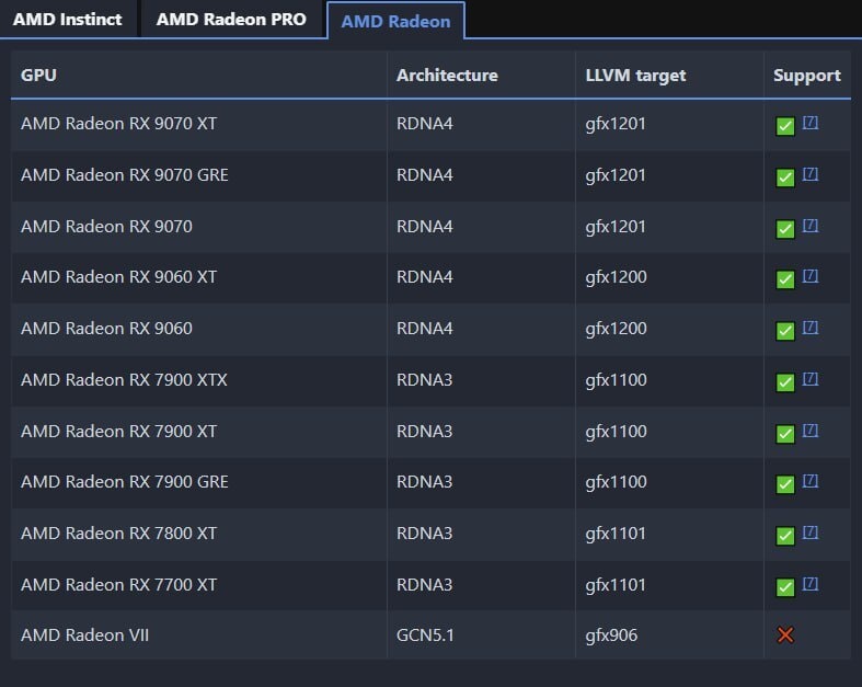 AMD представила ROCm 7.0.2 — обновление, которое официально добавляет поддержку видеокарт Radeon RX 9060 и RX 9060 XT, завершив тем самым полный переход серии RX 9000 на вычислительный стек ROCm. Ранее компания планировала это сделать ещё при запуске RDNA 4, но тогда некоторые модели остались без поддержки. В этой версии также реализована совместимость с Debian 13, RHEL 10 и Oracle Linux 10 (ядра Linux 6.12), добавлена интеграция Gaussian Splatting для PyTorch и поддержка PyTorch 2.8, FlashInfer и llama.cpp. В HIP появился флаг для некэшированной памяти, а hipBLAS обновлён для RDNA3.5 и RDNA4. @techogid