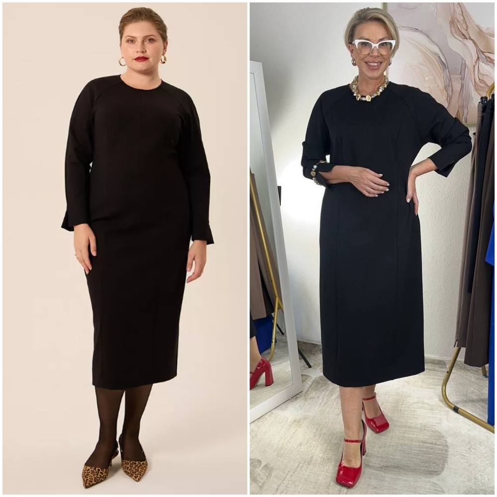 Платье очень многофункционально. Глубокий черный цвет и минималистичный крой делают его внесезонным решением.