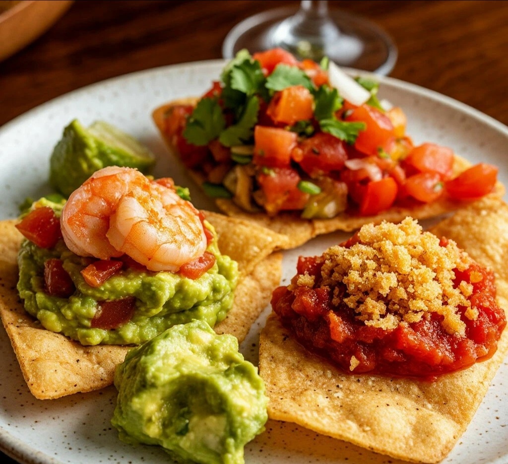 ЗАКУСКА ПОД КИНО ИЛИ ТЕЛЕВИЗОР — ТРИО НАЧОС «КИНО-ВЕЧЕР» Мяу, мои киноманы и сериалолюбы! 😺 Что может быть лучше субботнего вечера с хорошим фильмом и вкусной закуской? Сегодня приготовим трио начос, которое станет идеальным компаньоном для любого кинопросмотра! Быстро, вкусно и очень эффектно! ТРИО НАЧОС «КИНО-ВЕЧЕР» 🍿🎬 ИНГРЕДИЕНТЫ: Для гуакомоле с креветкой: · Авокадо – 1 спелый · Майонез – 1 ст.л. · Сок лимона/лайма – 1 ст.л. · Соль, черный перец – по вкусу · Маринованные креветки – 8-10 шт. · Зеленый лук – 1 стебель Для сальсы с мидией: · Помидор – 1 средний · Красный лук – ¼ маленькой луковицы · Свежая кинза – 3-4 веточки · Соль – по вкусу · Маринованные мидии – 8-10 шт. · Лайм – ¼ шт. Для паштета с джемом: · Готовый печеночный паштет – 100 г · Лук репчатый – ½ шт. · Яблочный уксус – 1 ч.л. · Сахар – 1 ч.л. · Растительное масло – 1 ст.л. Дополнительно: · Крупные кукурузные чипсы – 15-20 шт. · Петрушка для украшения ОБЩЕЕ ВРЕМЯ: ⏰ 15 минут ВЫХОД:12-15 штук (по 4-5 ка