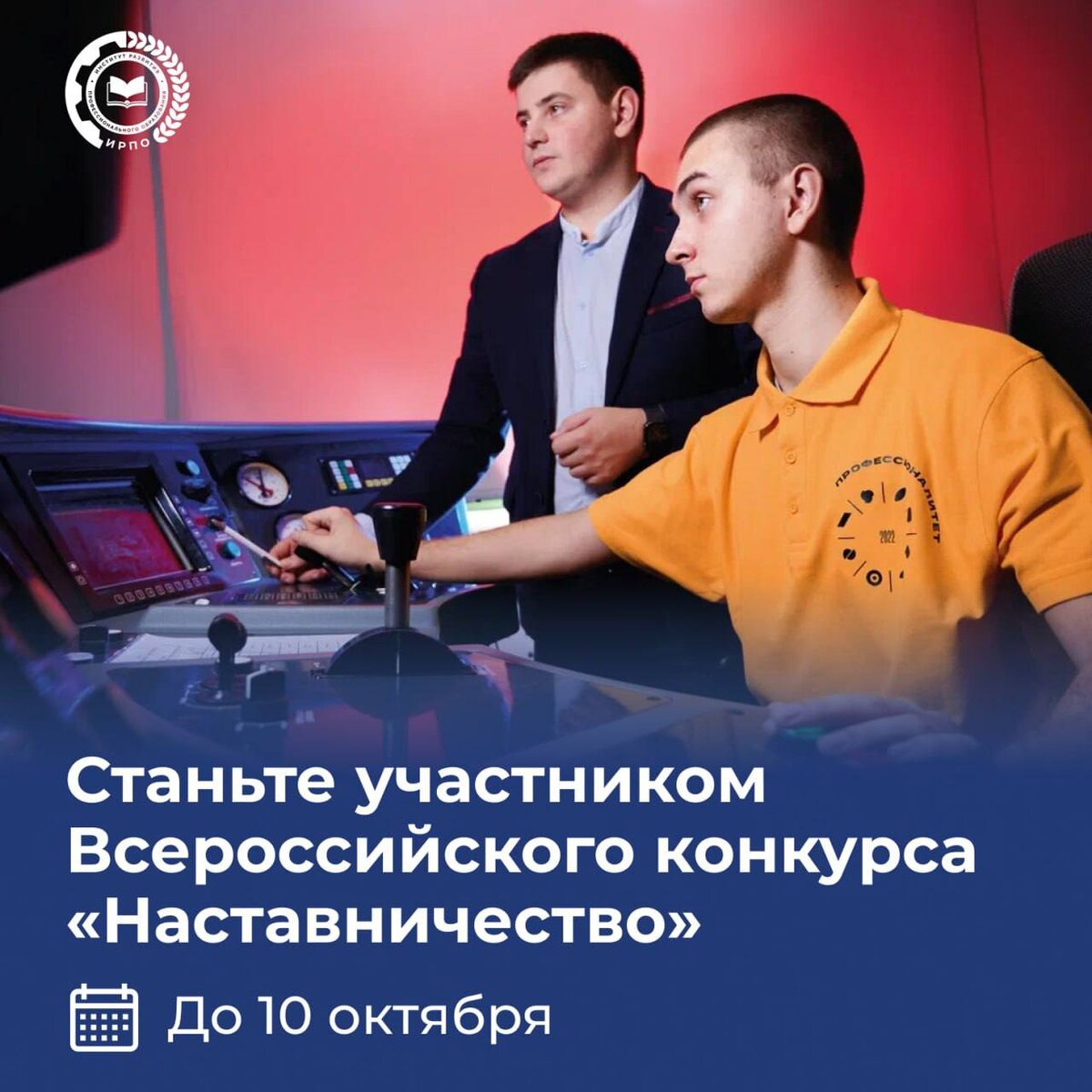 ⭐️ Наставники России, у вас осталось всего 3 дня... ...чтобы подать заявку на Всероссийский конкурс «Наставничество» до 10 октября. Это шанс обменяться опытом с коллегами со всей России и получить поддержку для дальнейшего развития. Участвуйте в одной из номинаций: ⭐️ «Наставничество на производстве» ⭐️ «Наставничество в сфере образования, воспитания и молодежной политики» ⭐️ «Наставничество в социальной сфере и общественной деятельности» ⭐️ «Наставничество на службе» Подробности и регистрация – здесь! Не упустите возможность заявить о своих достижениях – движение наставников ждет 👍 Организатором конкурса является Минпросвещения России, оператором – Институт развития профессионального образования. #Наставничество #ИРПО #85ЛетСПО