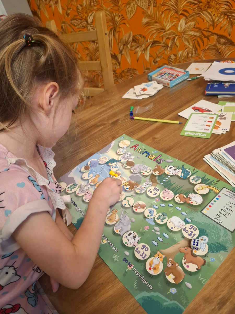 Сегодня занимались с Димой И Вероникой (по очереди). Со своими детьми заниматься гораздо труднее, потому что мать для них - не авторитет. Тем не менее, мать может хорошо мотивировать : шантаж, угрозы подкуп. Поэтому - занимались. С Димой идём по Kids box 1, набираем лексику. К 2 классу надобно научиться читать, в школе никто учить не будет. С Вероникой, пока, идём только по карточкам, у неё уже приличный набор активной лексики. Дополнительно, я всегда использую карточки, игры и доп. пособия. Хорошо заходят активные игры - Simon says, Hot and cold, Move /don't Move. С карточками всегда на ура идёт what's missing. Настолки, раскраски - все идёт в ход. Обязательно, мультики и песенки. При этом, я использую родной язык, а не только коммуникативную методику, как со взрослыми. Я видела, как на курсах или в детских центрах педагоги просто отрицают использование русского на уроке, но я считаю, что это не оправдано. Во -первых, родной язык является базой для обучения детей. Во-вторых, объя
