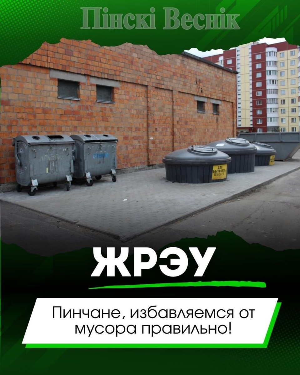 ♻️Пинчане, избавляемся от мусора правильно! 👆Строительные отходы и старая мебель больше не проблема! В Пинске работают специальные контейнеры для крупногабаритного мусора: 📍Адреса площадок: • ул. Центральная, 84 • пр. Жолтовского, 31а и 8 • ул. Солнечная, 36 • ул. Рабочая, 1 💡Два законных способа утилизации: • Самостоятельный вывоз на полигон - 1,62 руб/м³ • Заказ контейнера от ЖРЭУ: - Большой (8 м³) - 123,56 руб - Малый (0,75 м³) - 15,04 руб ✅В городе активно развивается раздельный сбор отходов - установлено 849 контейнеров для бумаги, стекла и пластика. 📎Помните: оставлять мусор возле контейнеров запрещено! #Пинск #экология #мусор #раздельныйсбор #ЖРЭУ 📍📍@Пинский Вестник ЮТУБ | САЙТ| ИНСТ | ВК | ОК | ФЕ | Прислать новость