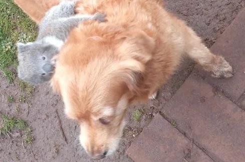 В австралийском штате Виктория мужчина услышал, как его ретривер Дэнни громко лает, и вышел из дома посмотреть, что происходит. С удивлением он обнаружил, что на спине Дэнни сидит детеныш коалы, который, по всей видимости, перепутал собаку с собственной мамой. Коаленок уцепился за ретривера и чувствовал себя вполне комфортно.