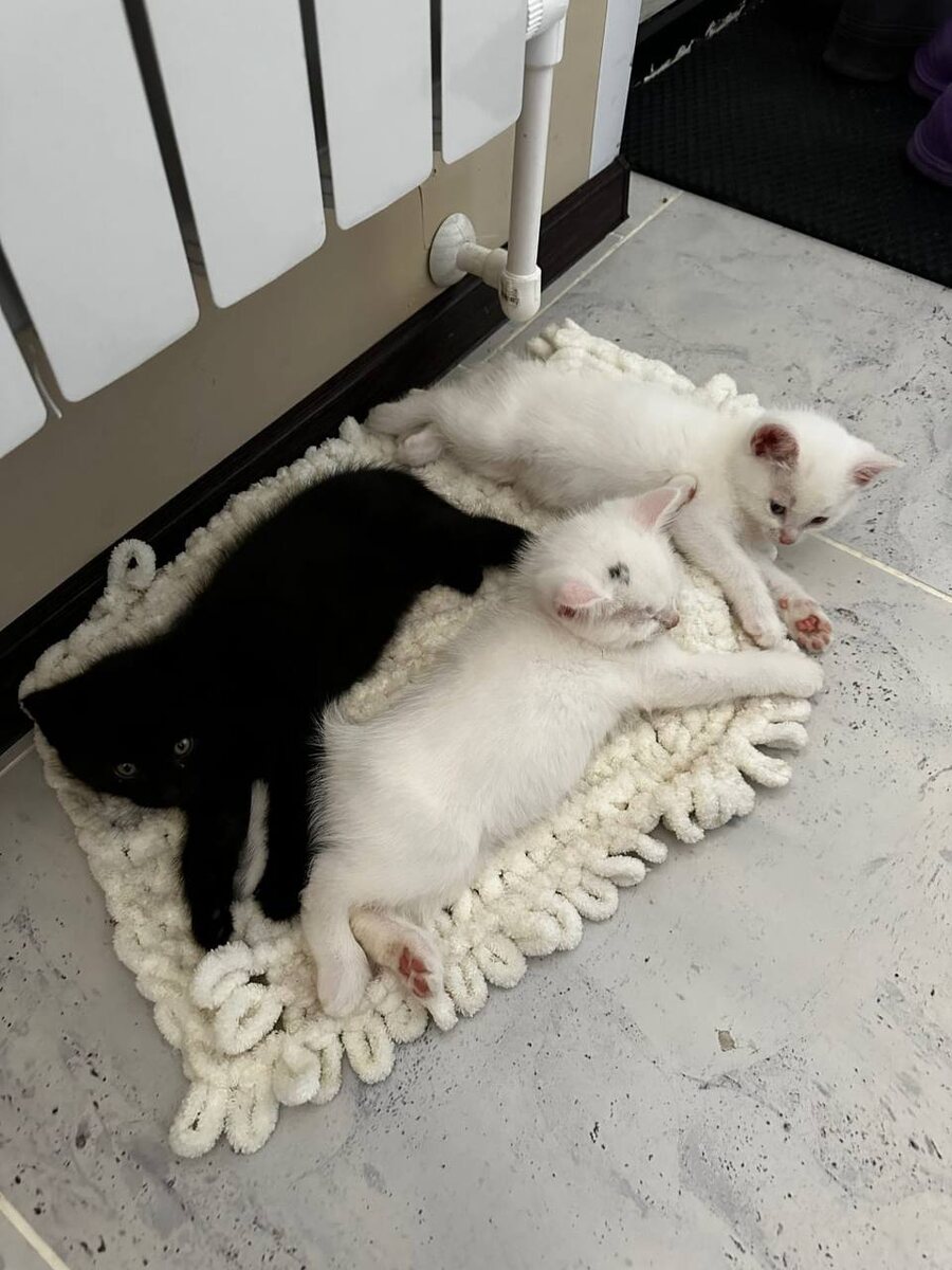 Помните двух белых малышей с помойки? Их сразу двоих взяла девушка! Потом там же нашли Кнопу и еще чёрненького мальчика(видимо они с одного помета) Кнопу я забрала, а черненького котенка взяла та же девушка! Теперь у нее три котика 😻😻😻 Обсудили питание, стерилизацию по возрасту! Все счастливы ❤️ #приветЯдома