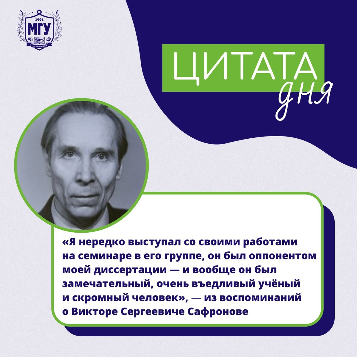 #цитата_дня Научный голос, который помог связать звёзды и планеты — и открыл путь к пониманию их истории. 🩵 🩵 11 октября 1917 года родился Виктор Сергеевич Сафронов — советский и российский астроном, крупный исследователь космогонии, автор теории формирования планет. 🩵 🩵 🩵 Сафронов разработал научную теорию, объясняющую, как из огромного облака пыли и газа в космосе со временем образуются планеты и складывается целая планетная система. Его книга «Эволюция допланетного облака и образование Земли и планет» стала фундаментальной для дальнейшего развития космогонии. 🩵 🩵Интересный факт: в честь Николая Степановича названа малая планета № 3615 — Сафронов. #МГУимениКуинджи