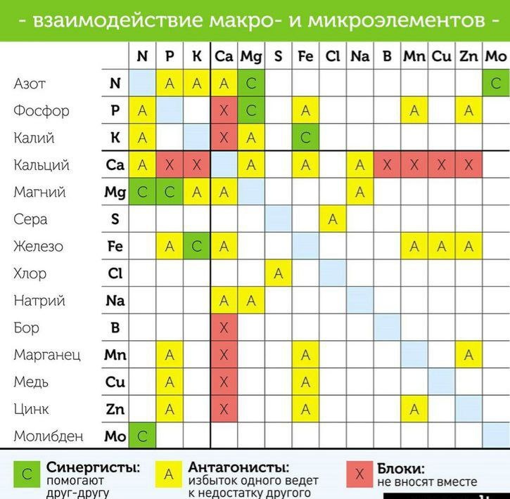 Совместимость макро и микроэлементов питания растений 🧐