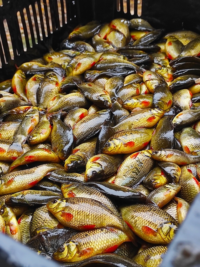 Два года назад поймал в лесном озере 7 золотых карасей и привёз домой. Рядом с домом есть небольшой пруд. Туда их и запустил и забыл про них. А нынче решил проверить что там есть:) Взял батончик положил в вершу и закинул в пруд. Какое же было моё удивление, когда из пруда я вытащил сразу почти 700 карасиков! И вероятно это ещё не всё. Почти все одного размера, в среднем 7 -8 см. Самые большие были 10-11 см. Отпустил обратно всех в пруд. Теперь думаю, что на следующий год их надо будет подкармливать, чтобы росли. Хотя, как пишут, золотой карась растёт медленно и уступает серебристому. Вообще золотой карась для нашей местности редкость. Думаю выпустить его в близлежащие водоёмы, где его нет, пусть размножается. Что думаете по этому поводу? Подписаться на Пикабу Познавательный. и Пикабу: Истории из жизни.