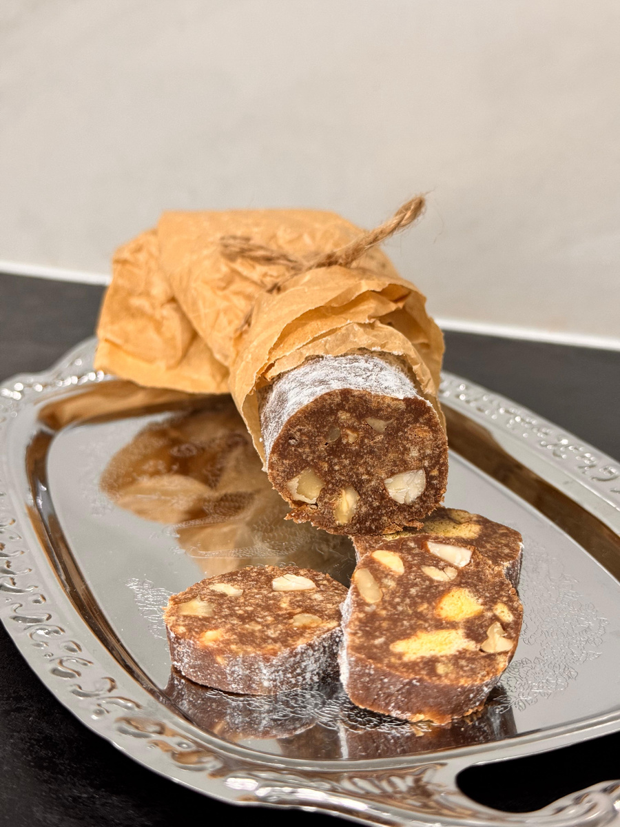 Этот рецепт — спасательный круг для тех случаев, когда хочется сладкого, а времени совсем нет. Никакого выпекания, только смешивание и терпение, пока колбаса застывает в холодильнике.