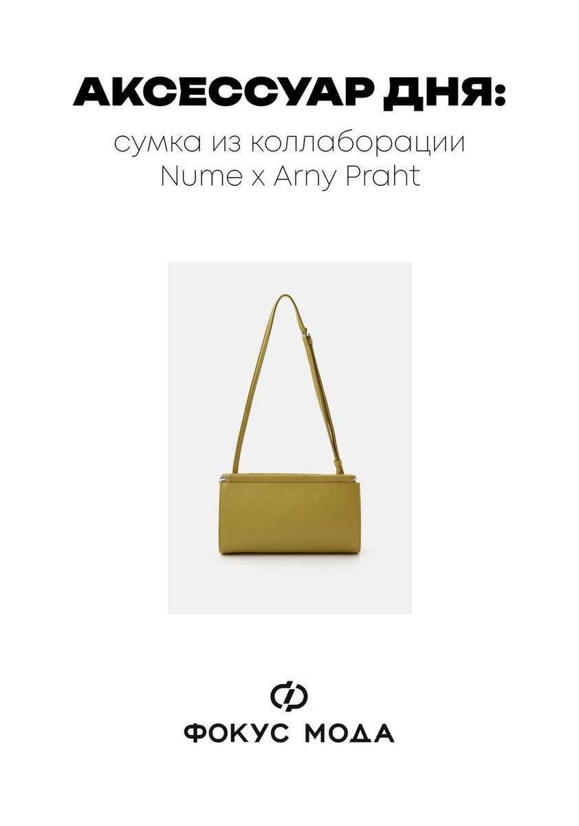 Оочень нравится коллаборация Nume x Arny Praht. Тот случай, сумка работает в том числе и как акцент. Цвет спокойный, насыщенный, не спорит ни с базой, ни с яркими оттенками. Носили бы её только подмышкой — у неё такая форма, что хочется сделать ремень короче и превратить в багет. Тогда она выглядит особенно круто! #ФокусМода_ВещьДня ⚫️ focusmoda.ru