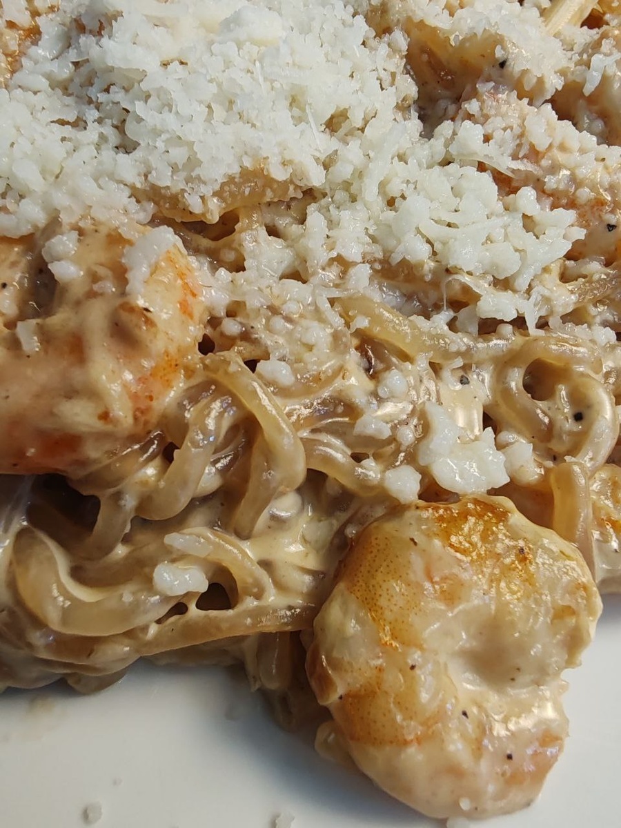 ▌ Рецепт кето-спагетти с креветками в сливочном соусе 🍝 Ингредиенты: - 400 г спагетти ширатаки 🍝 - 160 г креветок (готовых) 🍤 - 300 мл сливок 20% жирности 🧀 - 1 плавленый сырок (50 г) 🧀 - 3 ст. ложки соевого соуса 🍜 - 1 зубчик чеснока 🌶️ - 20 мл оливкового масла 🌱 - 1 маленькая луковица 🧅 Приготовление: 1. Лук нарезать и обжарить в оливковом масле до золотистого цвета. 2. Добавить креветки и чеснок, обжарить. 3. Добавить ширатаки и соевый соус, перемешать и обжарить. 4. Влить сливки и добавить плавленый сырок, протушить 5 минут в соусе. 5. При подаче посыпать тертым пармезаном. 🧀 КБЖУ на 100 г: - Калории: 142,9 ккал - Белки: 8,1 г - Жиры: 10,6 г - Углеводы: 2,5 г КБЖУ на весь рецепт: - Калории: 571,6 ккал - Белки: 32,4 г - Жиры: 42,4 г - Углеводы: 10 г Приятного аппетита! 🍽️ 👌 Маша Тафье, нутрициолог, психолог. @tafje -58 кг. Личный опыт похудения. 👉 Мой сайт: https://ketolite.ru