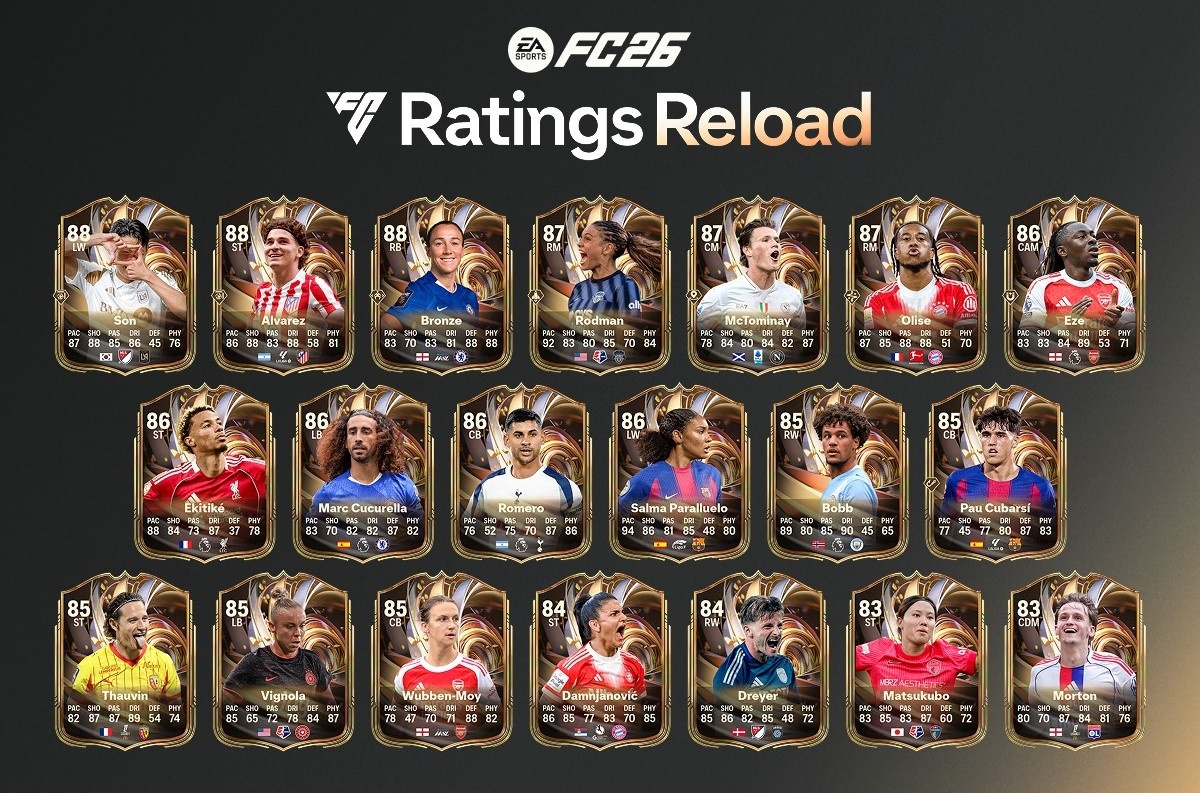 Учла голоса игроков. На старте FC 26 выдала немало спорных рейтингов. EA Sports опросила фиферов и обновила карточки в новом событии Ratings Reload. Кому достались улучшенные характеристики? 📌 Все про EA Sports FC 26 в одном месте: топ-рейтинги и лучшие карточки, обзоры механик и не только Разработчики повысили рейтинги более десятка футболистов. Среди них много знакомых имен. ● Самое очевидное улучшение у правого полузащитника «Баварии» Майкла Олисе. Прошлым летом француз ушел на повышение из «Кристал Пэлас» и добился впечатляющих результатов – 12+15 результативных очков в Бундеслиге, 5 голов в ЛЧ и крепкое место в сборной Франции. Базовая карта с рейтингом 86 и заниженной скоростью выглядела ужасно. ● Большой апгрейд получил любимчик фанатов Сон Хын Мин. Корейского Роналду сильно занизили после спорного сезона «Тоттенхэма» и перехода в МЛС. Свежая карточка напоминает топовые версии вингера. ● Новый рейтинг дали Хулиану Альваресу. Аргентинец сделал дубль «Реалу» и доказал, что в «Атл