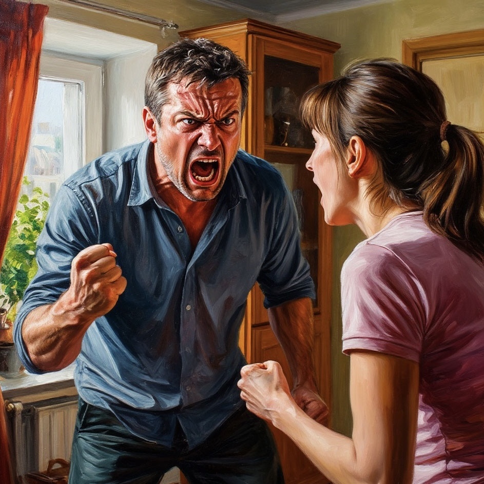 Денис толкнул жену назад. Катя споткнулась, больно ударилась спиной о край стола: