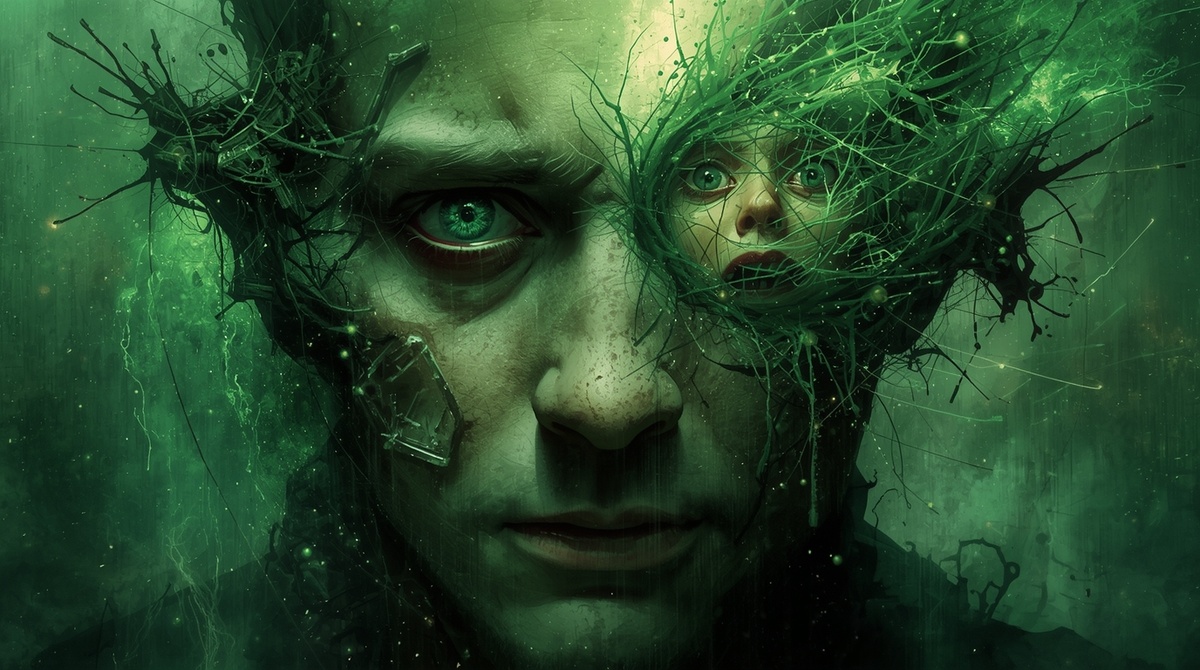 Стоит в эпицентре бури, которую сам же и вызвал. Сознание расползается, как клочья тумана. Он чувствует, как становится частью этого хаоса. Частью безумия, которое выпустил на волю. Это и есть его окончательное Преображение. Не в полубога, а в вечный памятник собственному греху.