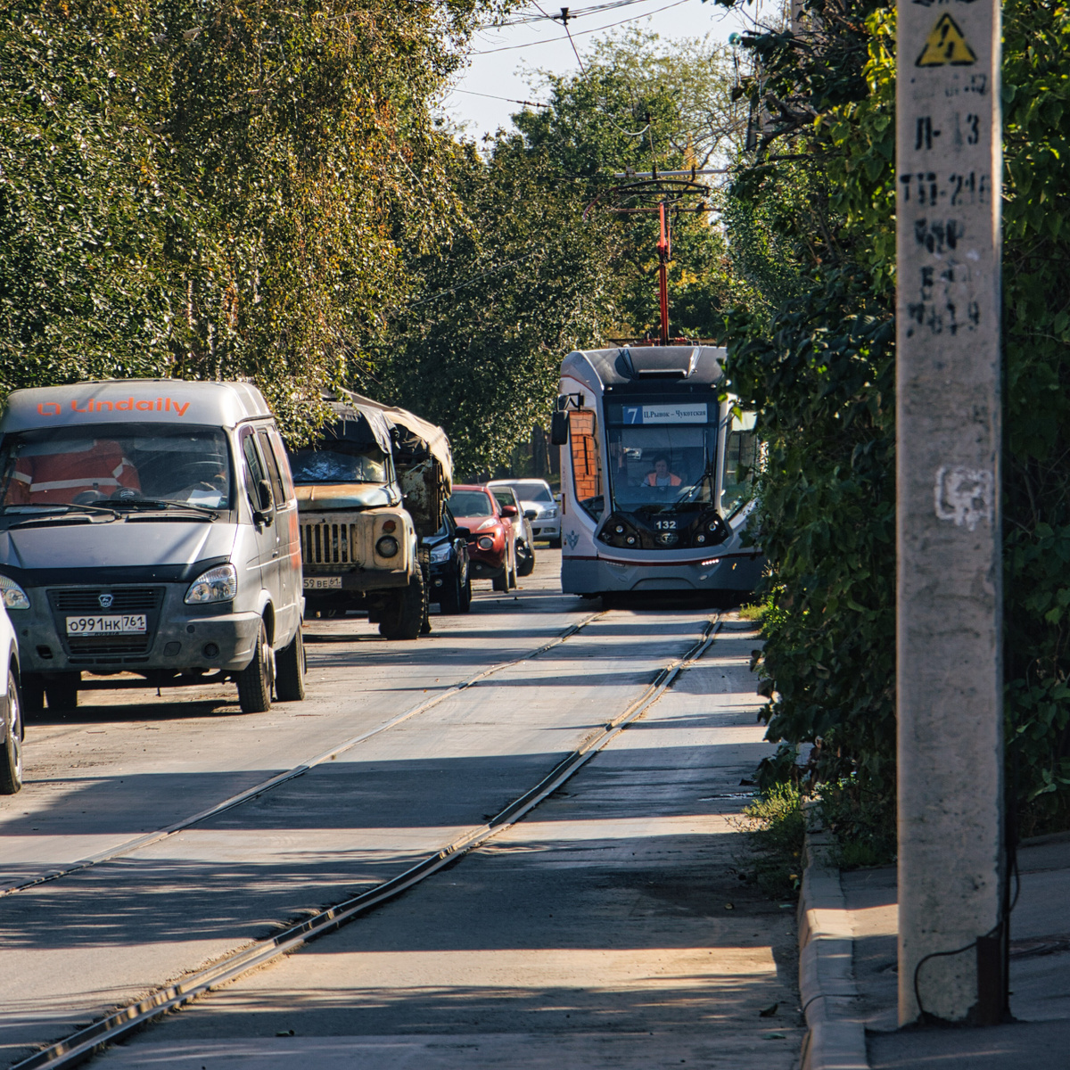 5-8. Но большинство вагонов в Ростове-на-Дону - это старая и добрая Tatra 3M (вернее, её модификация Т6В5, года выпуска 1983-1993). Красная и красивая, со своей покраской кисточкой лаком ПФ вместо вечной современной эмали. Вот она в парке Собино.