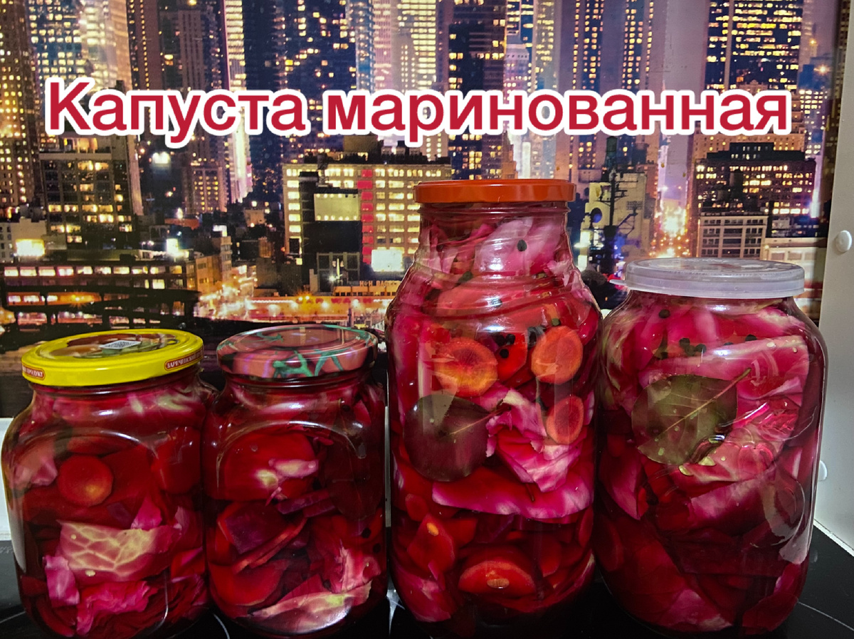 Ингредиенты: • Капуста — 1,5 кг • Свекла — 1-2 штуки (в зависимости от размера) • Морковь — 1-2 штуки • Чеснок — по вкусу • Растительное масло — 0,5 стакана • Соль — 2 столовые ложки • Сахар — 0,5 стакана • Вода — 1 литр • Уксус 9% — 150 мл • Лавровый лист — 2-3 штуки • Перец горошком Приготовление: 1. Морковь и свеклу нарезать брусочками, капусту порезать квадратиками. 2. В стерильные банки слоями уложить овощи, начиная с капусты, чередуя с морковью и свеклой. 3. Вскипятить воду с солью и сахаром, выключить, добавить уксус. 4. Залить овощи горячим маринадом, сверху в каждую банку налить по 2 столовые ложки растительного масла. 5. Закатать крышками или, если планируется съесть сразу, накрыть полиэтиленовыми крышками. 6. Оставить банки остывать, и на 36 часов при комнатной температуре , затем убрать в холодильник или погреб. Такая капуста получается хрустящей, с приятной кислинкой и ярким цветом от свеклы, отлично подходит как закуска или гарнир.