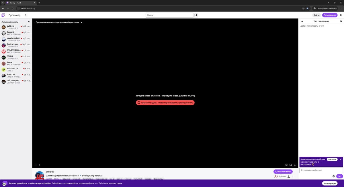 И так народ, есть 2 новости плохая и хорошая. Но для начало расскажу что происходит, за последние дни люди пишут что трансляция не идет и выдает ошибку. Я не как не видел её так как автор, но зашел инкогнито и да проблема есть. Долго решал проблему и не мог понять, толи с моей сторонны проблема толи с пользователя. И начну с хорошей, вроде смог решить проблему с воспроизведением стрима, и в следующий раз ужен должно все работать. Но тут и выходит плохая новость, на твиче все это время я мог стримить FullHD (1920х1080), но теперь придется запускать просто в HD(1280x720). Да вот так теперь, но постараюсь поднять хотя бы битрейт что бы в кашу не превратилось. Как то так. #DreidUPGames #игры #стрим #twitch #твич