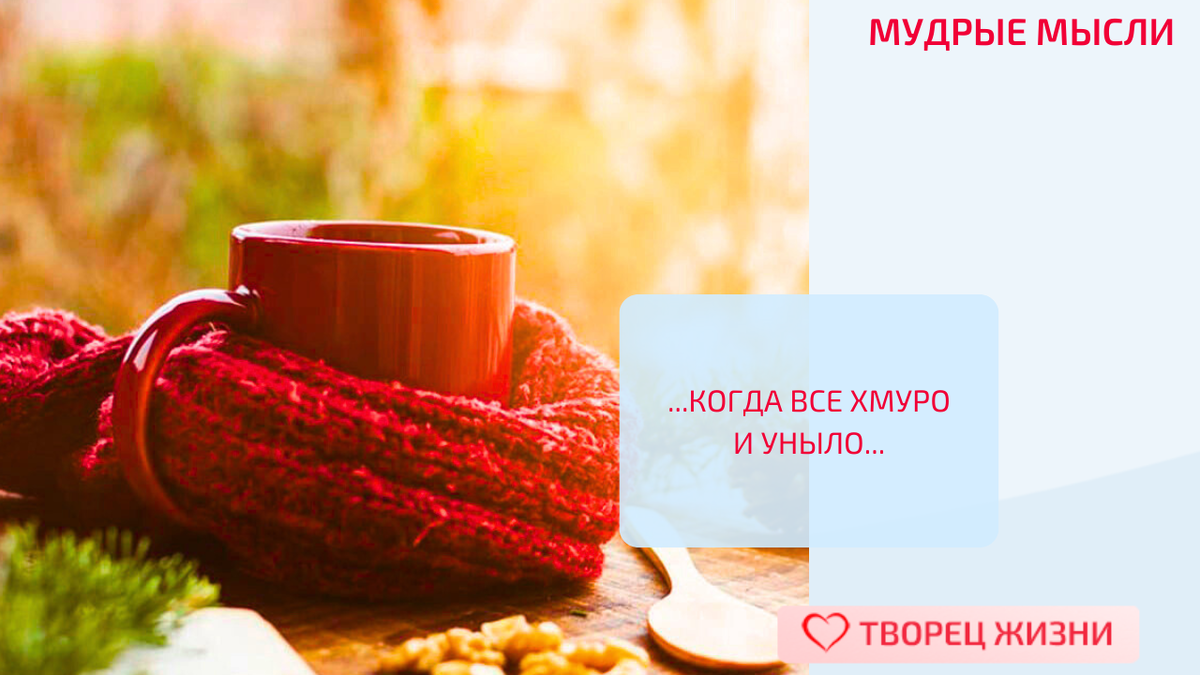 😉 В такую погоду, без солнышка, без снега, когда все хмуро и уныло, людям очень необходимы чашка смеха, бокал радости, сдобренный улыбкой и хорошими словами… (Ирина Асимова)