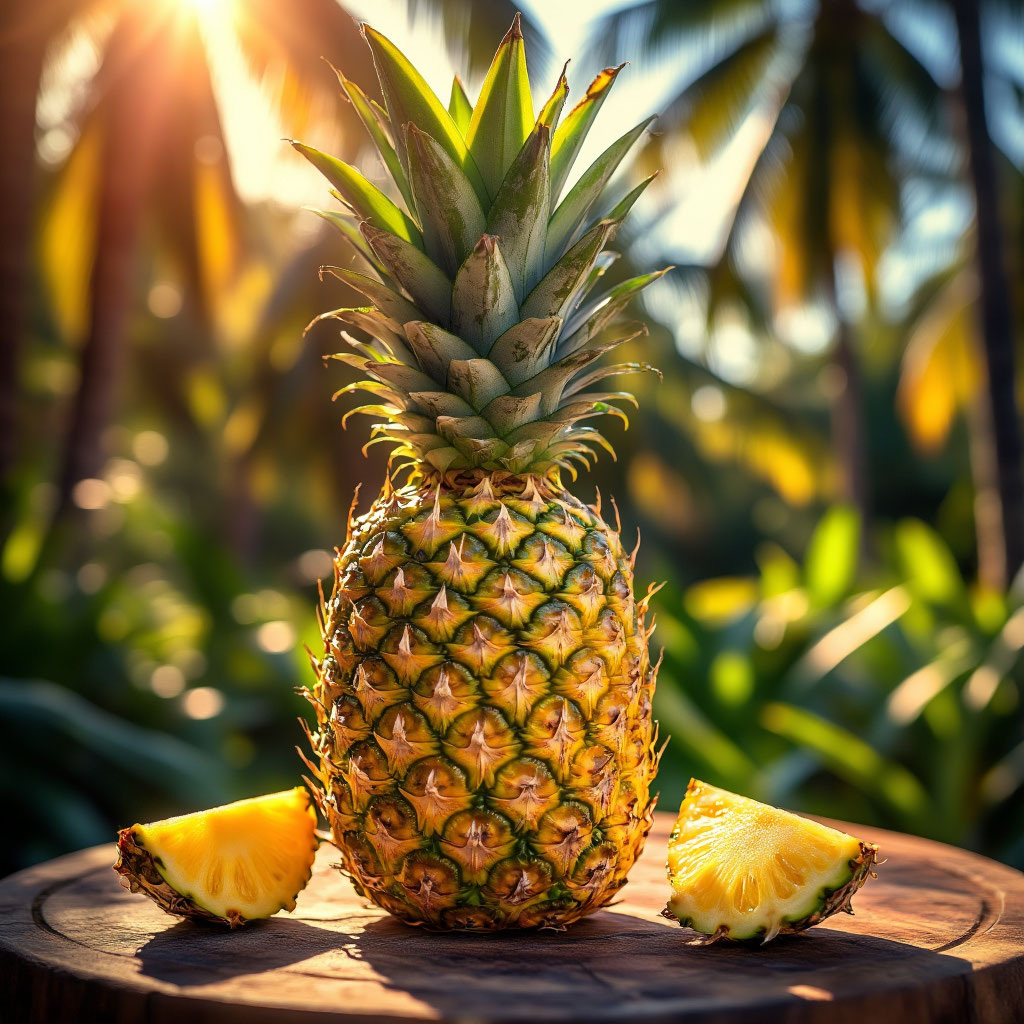 Ананас — это не просто вкусный тропический фрукт, но и настоящий кладезь полезных веществ. Его популярность обусловлена не только ярким вкусом, но и многочисленными полезными свойствами. Состав и польза. Ананас богат витамином C, который укрепляет иммунитет и помогает бороться с простудными заболеваниями. В нем также содержатся витамины группы B, которые поддерживают здоровье нервной системы, и калий, необходимый для нормальной работы сердца. Особое место занимает фермент бромелайн, который улучшает пищеварение, способствует расщеплению белков и обладает противовоспалительными свойствами. Калорийность и диета. Ананас — низкокалорийный продукт (всего 50 ккал на 100 г), что делает его отличным выбором для тех, кто следит за фигурой. Благодаря высокому содержанию воды и клетчатки он помогает утолить голод и ускоряет обмен веществ. Применение. Ананас можно употреблять в свежем виде, добавлять в салаты, десерты и смузи. Он также используется в кулинарии для приготовления соусов к мясу и рыб