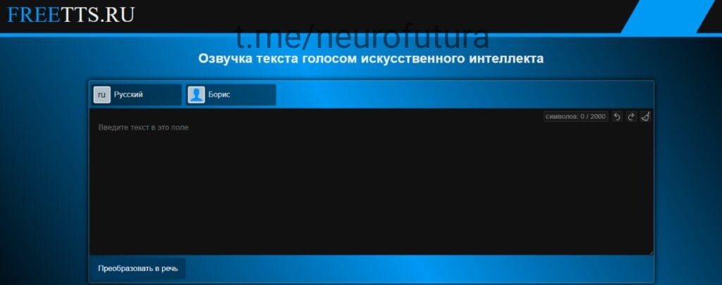 🔥FREETTS.RU — это бесплатный сервис, который позволяет озвучивать текст виртуальным голосом. В основе работы сервиса лежит нейросеть. На странице есть функциональные кнопки: для очистки текстовой области, изменения размера шрифта и цвета фона. Также присутствует индикатор обработки и кнопка для запуска озвучивания текста. После озвучивания появляются блоки с аудиозаписями, которые сохраняются некоторое время. Наш телеграмм канал t.me/neurofutura