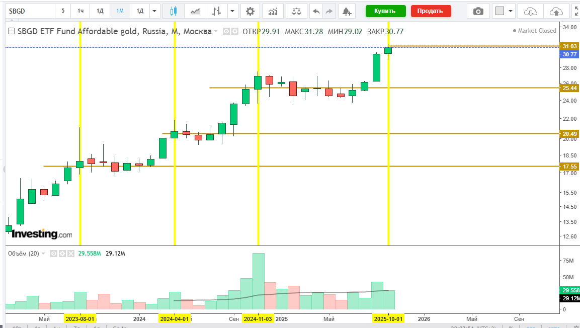 GLDRUD_TOM. Постепенная покупка по 1 лоту, в период с 31 марта по 10 октября сего года. Средняя цена покупки 9 422,руб 70коп. Средняя цена продажи 10 361 руб 88коп. Среднее время удержания лотов 92,72 дня. Средняя доходность по всей позиции 948,21 на лот, т.е. 10%. Но облигационеры любят пересчитывать всё в годовые %ты, вот вам: 10% за 93 дня - это будет 39,5% годовых. Для сравнения - в это время можно было найти депозит на 30%гг на 3мес, правда на маленькую сумму и на условиях. На самом деле имели место 2 сделки: примерно половина лотов куплено в апреле-мае, в начале боковика, и ещё примерно половина - в сентябре-октябре, на росте. В первую (длинную) сделку доходность получилась 39%гг (повторно - это пересчёт на год!). Во вторую (короткую) сделку доходность в пересчёте на год получилась 71,5%гг. Спекулянты на акциях посчитали бы по другому. Самый первый лот был куплен по 8 490 и продан по 10 362. Парни бы утверждали бы, что заработали 11% за 7 мес. Считать дальше они бы просто не ста