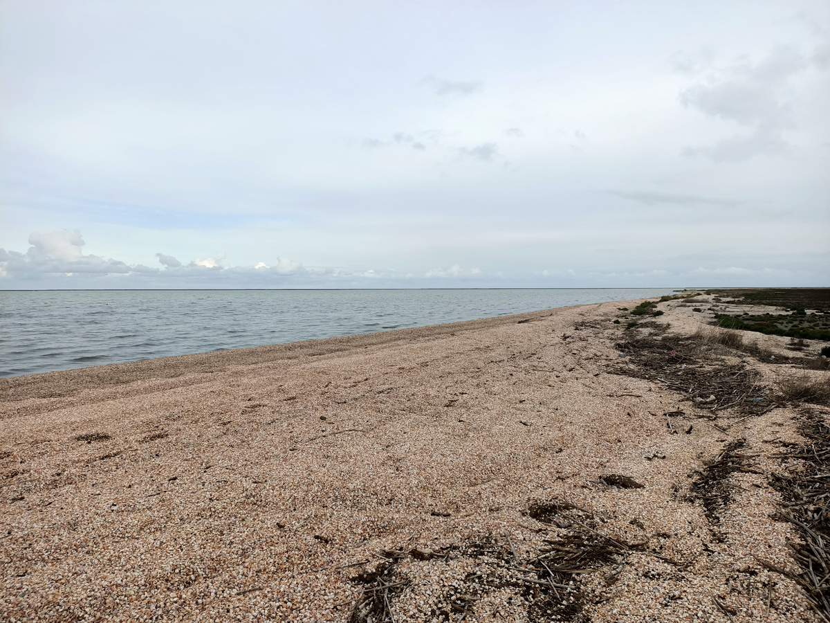 Путешествие в неизвестность! Именно так начиналось путешествие к озеру Сиваш, известному как Гнилое море. Куда идти? Есть ли у Салгира устье или он исчезает в песках. Даже по Симферополю он течёт не всегда и только благодаря плотинкам вода радует жителей и гостей города. А какой он в устье? По берегу из миллионов, а может быть и миллиардов ракушек, которые громко хрустели под ногами, вдоль берега солёного до невозможности даже попробовать его воду Сиваша, в сторону, где должно было быть устье самой длинной реки Крыма. И... Вот оно... Тонкий неглубокий ручеёк тёк в сторону моря, а в нескольких метрах от Сиваша образовывал небольшую лужицу. Весной, наверное, Салгир заливает эту площадь, но сейчас после безводного лета даже сильные дожди последних дней не помогли ему набраться сил. Но хватило, чтобы сделать русло вязким, встанешь туда, где нет ракушек, да и где есть, и чувствуешь, что под ногами не твердь земная, а мягкая поверхность, которая ходит под ногами, проваливаясь местами на не