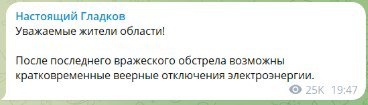 Вячеслав Гладков предупредил о возможных кратковременных отключениях электроэнергии