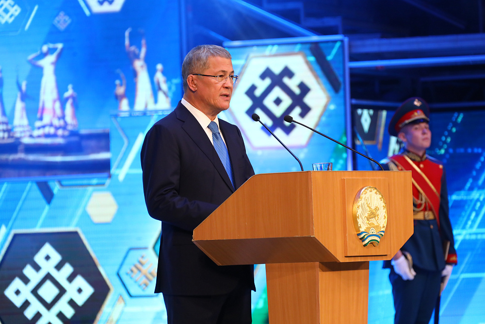 Радий Хәбиров үҙ сығышында республика иҡтисадының һәр тармағының уңыштарын, төҙөлөш, социаль өлкә үҫешен барланы. Рәсәй Президенты Владимир Путиндың уға республикаға етәкселек итеүҙе ышанып тапшырыуына ете йыл тулыуын иҫкә төшөрҙө.