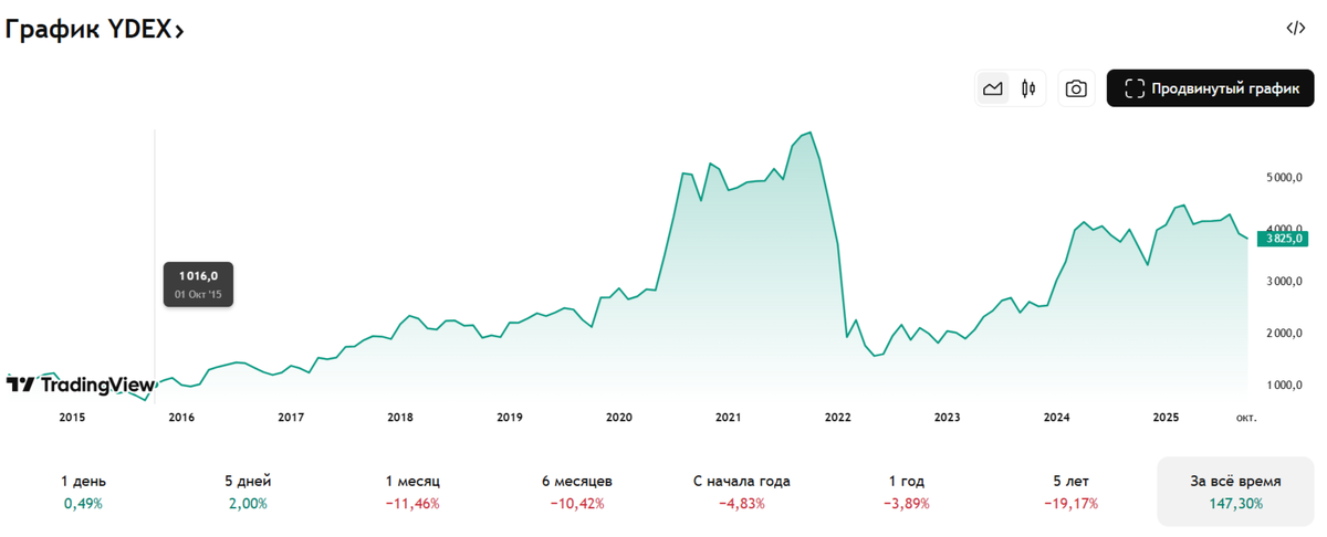 Здравствуй дорогой читатель, решил сравнить на горизонте 10 лет акции роста и стоимости на фондовом рынке РФ. С акциями стоимости у нас всё в порядке, а вот акций роста не так много, особенно если учесть 10-ти летнею историю. Первое что приходит в голову - Яндекс, его и возьмём. Акции стоимости будет представлять наш почти дивидендный аристократ - Лукойл. Допустим условный айтишник Василий 10 лет назад вкладывает один миллион рублей в акции Яндекс. Его друг таксист Арсен в этот же день покупает акций Лукойла на один миллион рублей. Все дивиденды парни реинвестируют в свою компанию, по рыночной цене на дату выплаты. Кто из них получит бОльшую бумажную доходность на свои вложения за 10 лет? В расчётах я не буду учитывать комиссию биржи и брокера, а также не буду округлять акции до целых чисел, все эти нюансы можно опустить, для сравнения они нам не помогут. Итак, Василий 1 октября по цене 1016 рублей за акцию покупает 984,25 акции Яндекса. Арсен приобретает 431,03 акции Лукойла по цене
