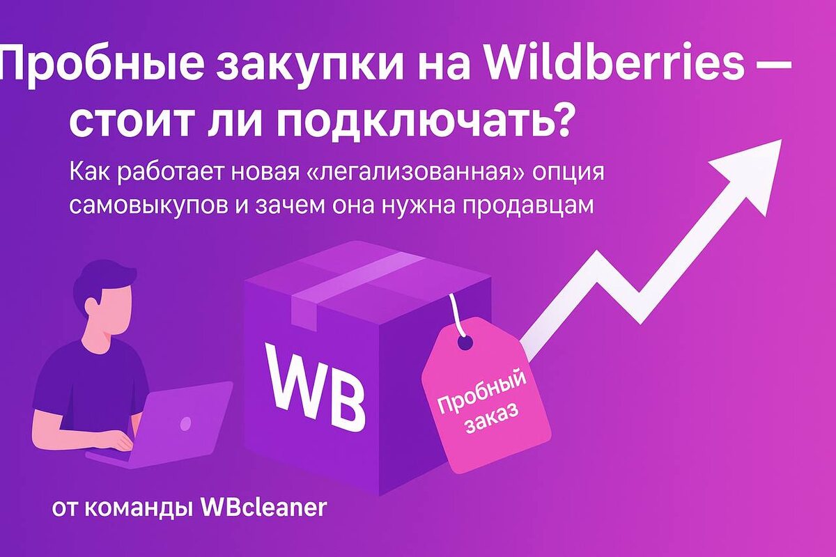 Привет! 👋 Мы — команда WBcleaner. Каждый день мы помогаем продавцам на Wildberries разбираться в тонкостях продвижения, логистики и рейтинга. Сегодня расскажем про новую опцию, которая вызывает кучу вопросов — «Пробные закупки собственных товаров». Wildberries запустил функцию, которая позволяет легально выкупать свои товары — без страха санкций и блокировок.