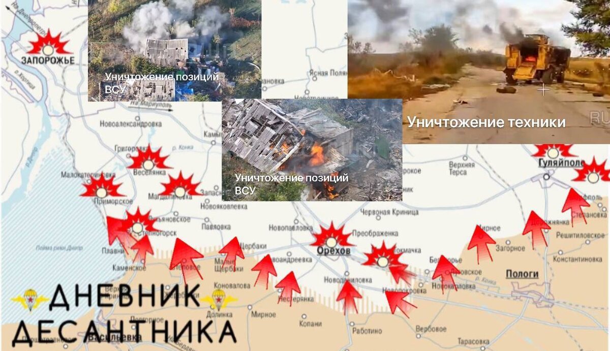 🪂 Запорожское направление. Подразделения ВС РФ продвигаются на всех участках фронта от Приморского до Гуляйполя. ▫️На участке Приморское – Степногорск подразделения ВДВ имеют тактические успех и расширили контроль территорий в обоих населённых пунктах. Отважные десантники с невероятными усилиями и мужеством продавливают оборону противника и занимают все новые и более выгодные рубежи, организовав систему огневого контроля и наблюдения за прилегающими участками. Также десантники не дают противнику перегруппироваться и восстановить силы. ▫️ВСУ все чаще стали применять на направлении авиабомбы, если раньше вражеская авиация работала несколько раз в неделю, то сейчас практически ежедневно. Также идёт активный контроль прифронтовых территорий дронами разведчиками самолётного типа со стороны противника. ▫️Пехоты у ВСУ значительно становится меньше, но с геометрической прогрессией растёт количество Дронов, применяемых по нашим позициям. ▫️В районе Малой Токмачки продолжаются позиционные