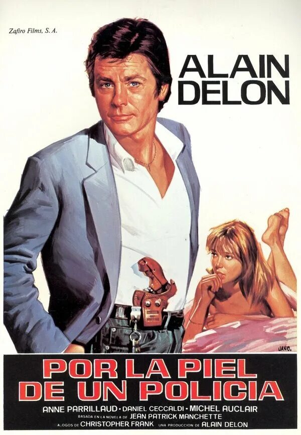 Итак, Ален Делон решил стать режиссёром. Для экранизацию выбрал кримнальный роман с жутким названием "Сколько костей!". Ясное дело, кино с таким заглавием предполагало бы нечто из жизни людоедского племени мумба-юмба. Поэтому решили не мудрствовать и назвать не хитро: "За шкуру полицейского". Бывший полицейский Шукá, организовывает частное детективное агентство. Секретарша у него красотка Шарлотта (Анн Парийо), которая по совместительству его сердечная подруга, хотя моложе его вдвое. Но у французов так принято. К ним обращается женщина с просьбой отыскать её пропавшую слепую дочь. Шукá с Шарлоттой берутся за дело, а на следующий день женщину убивают прямо в центре Парижа. Детектива это подхлëстывает и он начинает рыть носом землю с двойным усердием. Начинается рутинная работа, то есть перестрелки, похищения, мордобой, ломание рук молотком. Герою Делона без этого - ну просто никак. Между делом страстные поцелуи с юной секретаршей. Для саундтрека была выбрана песня Оскара Бентона "B