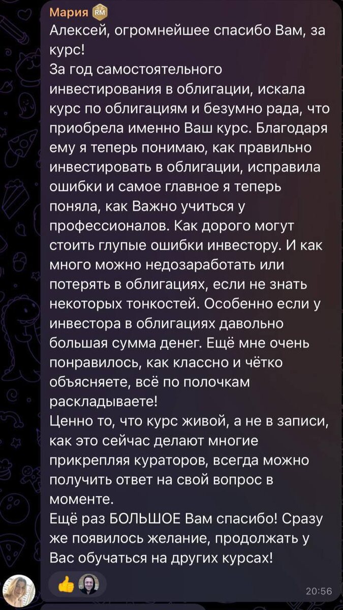 Я не ожидал такого, когда только начинал строить школу. Не думал, что столкнусь с такими трудностями, и хочу честно рассказать об этом в этом посте. С самого начала идея была в том, чтобы создать систему, где лучшие преподаватели смогут передавать знания по моим программам. Но реальность оказалась другой. Когда дело дошло до подбора преподавателей, я понял, что найти людей, которым можно доверить обучение, крайне сложно. Большинство знают теорию, но не имеют достаточной практики, не ведут человека к результату. Поэтому обучение по облигациям я провожу сам. Лично. Без кураторов, без записанных уроков, без посредников. Все занятия проходят в живом формате, я сам отвечаю в чате, разбираю ошибки, объясняю и направляю. Честно, не видел такого ни у кого. Кто-то считает, что так неэффективно. Но мне кажется, что этот формат даёт людям реальные результаты. Я вижу это по отзывам, и для меня это лучшая оценка моей работы 👆 Если когда-нибудь в Школе Капитал появится преподаватель, знайт