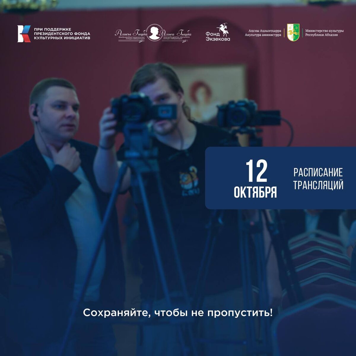 Дорогие друзья! Уже завтра 12 октября стартуют жеребьевка и мастер-классы 2-го тура IV Международного музыкального конкурса-лаборатории Алисы Гицба в Москве. Смотрите прямую трансляцию по ссылкам: ✔️ 10.40 - Жеребьевка 💙 Смотреть в VK: https://vkvideo.ru/video-204276674_456239274 ✔️ 12.00 - 15.00 Рафаэль Паласиос (Мексика) «Барокко, что это?». 💙 Смотреть в VK: https://vkvideo.ru/video-204276674_456239275 ✔️ 16.00 - 18.00 Наталья Загоринская «Секреты камерного вокального исполнительства». 💙 Смотреть в VK: https://vkvideo.ru/video-204276674_456239276 ✔️ 19.00 - 21.00 Валерий Макаров «Техника бельканто» 💙 Смотреть в VK: https://vkvideo.ru/video-204276674_456239277 ❗️Сохраняйте, чтобы не пропустить! Завтра за час до начала мероприятий мы еще раз пришлем ссылки для подключения к трансляциям. 🎶 Подключайтесь! 🔗Наш сайт: gitsba-competition.com ❤️Проект «IV Международный музыкальный конкурс-лаборатория Алисы Гицба» проходит при поддержке Президентского фонда культурных инициати