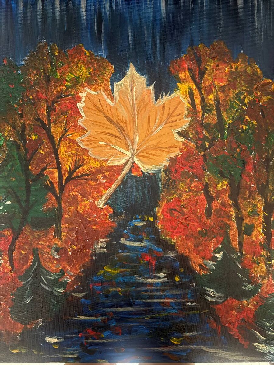 🟢 Картина на фото - это произведение моего друга, товарища и просто красавицы Елены Кабановой 🟢 Стихотворение написано при созерцании этого чудесного творения Осень заводит, дорогами странными, Тропами тайными, в топь, где печали тянут на дно, Она манит своими цветами нас, поглощая как кисть полотно, Вот шел по листве и уже потерялся. Листопад закрывает твой взор, Тучи сгущаются, дождь предвещая, Ветер поёт свою песнь об одном, Завывает и куртку срывая, толкает вперед. Крупными каплями, слезы стирая, Прячет нас осень к себе под пальто, Там так уютно, и кажется даже, немного тепло, В рубашке промокшей, с душою холодной. Властвует осень в наших умах, Вроде не лето, но еще не зима, Момент переходный для многих, Коих согреть не успело, жаркое солнце. Лучик последний, пробиваясь в оконце, Дарит себя всего без остатка, Темное облако закрывая дорогу, Забирает надежду и даёт темноту. Сильный встает, слабый сдается, В поисках света, люди бродят везде, В чьих-то глазах находим мы солнце,
