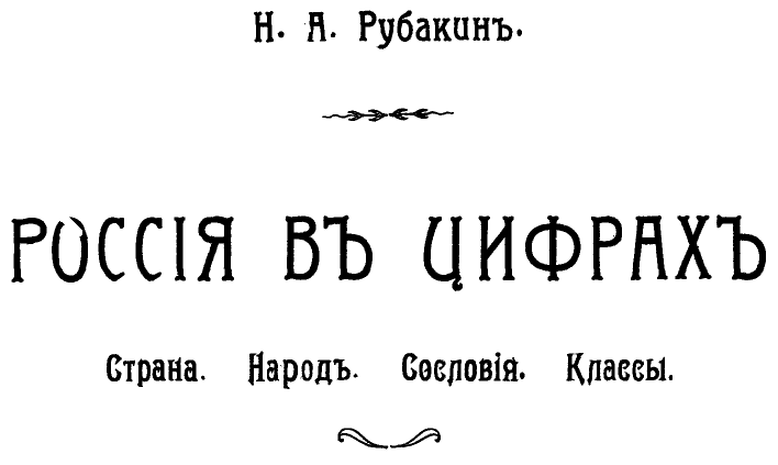 Николай Александрович Рубакин (1862 - 1946) - один из последних энциклопедистов "вне времени". Собрал и оставил после себя несколько библиотек, а также множество книг на самый разные темы - от основ воздухоплавания до представленной в этой статье совершенно фундаментальной "России в цифрах", изданной в 1912 г. Книга эта написана по результатам переписи населения Российской империи 1907 г. Читается как приключенческий роман - на одном дыхании. Для меня она в более чем значительной степени перевернула представление о жизни в России "до 1917-го года". Достаточно одной таблички - проценты сословий. Дворяне - 1.4% (1% потомственных, 0.4% личных), попы и купцы в гильдиях - десятые доли процента, казаки ("Росгвардия" по нонешнему) 2.5%, мещане (городские жители вне сословий, свободные, платящие налоги и рекрутчину - от "лиц свободных профессий" (отдельный раздел в книге), до тончайшей прослойки квалифицированных рабочих, босяков с Хитровки, дам "с пониженной социальной ответственностью, м