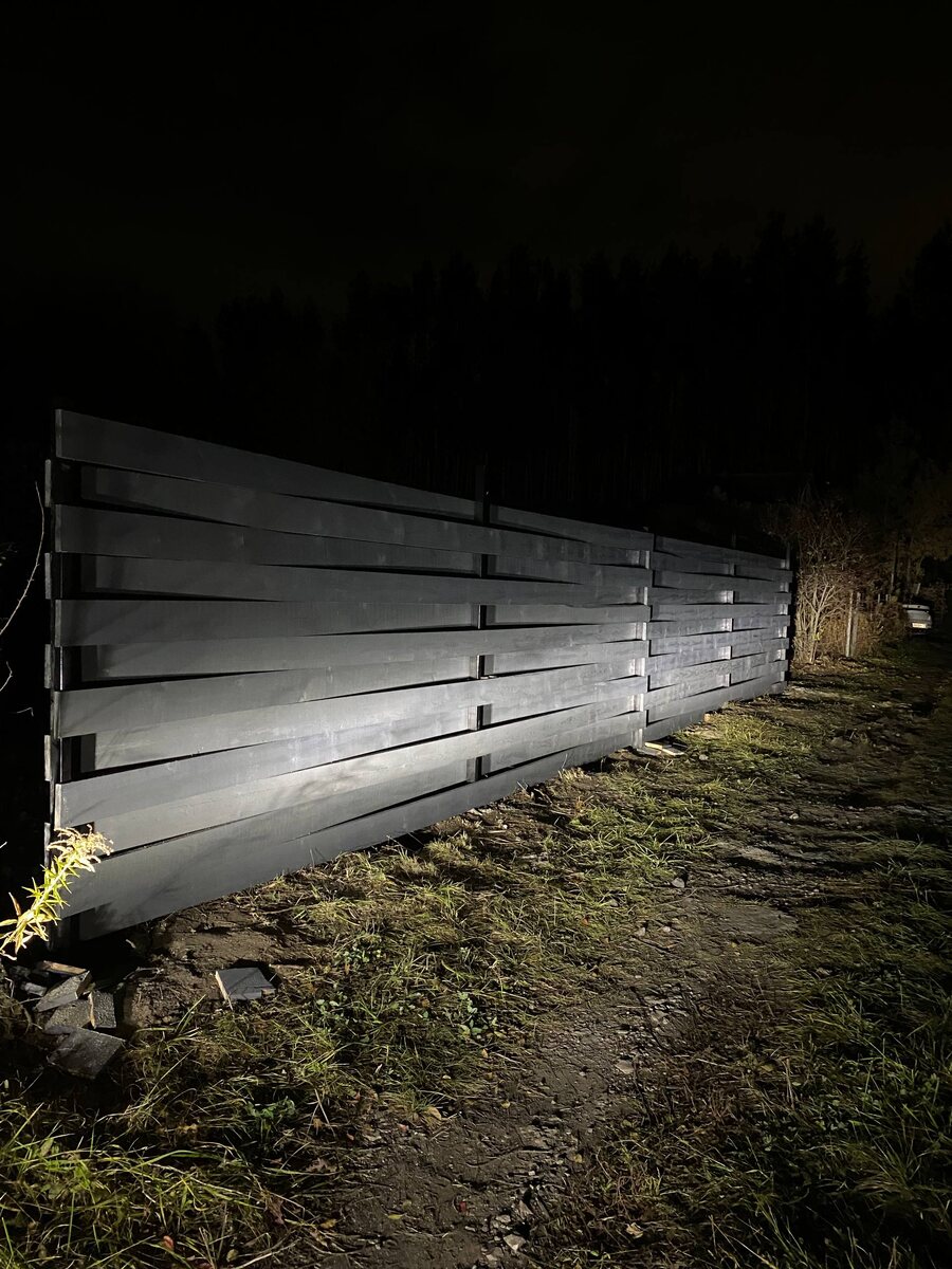 Вот такая красота у нас вырисовывается! Мы как устали… За 7 часов успели только один пролет 🫠 Еще расход краски оказался космически большим (мы красим в 2 слоя с обеих сторон) ооооооочень долго все это сушить. Но мы конечно же не выжидали 2 часа, а красили вторым слоем через 20 минут. Итого, на 2 пролета ушло 9 литров краски за 6.000₽ 🤯 А пролетов будет 12… Если Вам интересно какая выйдет итоговая сумма такого забора ставьте 🔥 Доброй ночи! 💪🏼