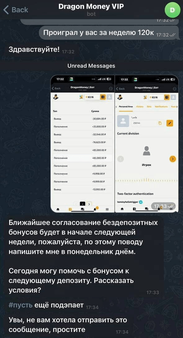 Игрок обратился в поддержку казино с просьбой выделить ему бонусов, ведь он проиграл уже «120к за неделю». Однако в ответ получил интересный совет.Сотрудница поддержки казино видимо случайно перепутала чаты и отправила игроку предложение «еще подепать». А в понедельник уже якобы обратиться повторно.Додепнул ли в итоге игрок — остается неизвестно. больше инетересных новостей у меня в телегармме -https://t.me/+K7Tjvwjkozw5N2Ni