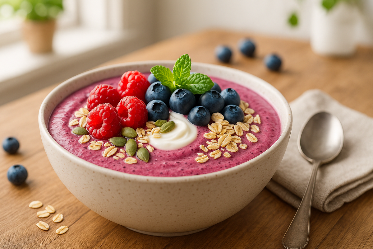 Знакомая картина? Будильник, сборы, дети, работа — и некогда даже яблоко съесть. А к обеду накатывает усталость и хочется "что-нибудь вредное". Этот смузи-бол с овсянкой и ягодами станет твоим спасением: готовится за 10 минут, насыщает на 3-4 часа и заряжает энергией. Бонус — понравится всей семье! Смузи-бол — это не просто красивая картинка для Инстаграма. Это сбалансированный завтрак, где есть всё нужное: И главное — это быстро. Пока греется чайник, ты уже позавтракала. Бюджетные замены: Нет ягод? Возьми банан. Вместо модных семян чиа используй обычные гречневые хлопья — пользы столько же, а цена в 5 раз ниже. Шаг 1 (1 минута): Залей овсянку молоком, оставь набухать. Шаг 2 (2 минуты): В блендере взбей йогурт с ягодами до однородной массы. Замороженные ягоды дадут густую текстуру. Шаг 3 (1 минута): На дно миски выложи набухшую овсянку, сверху залей ягодным смузи и посыпь семечками. Готово! Калорийность: ~200 ккал на порцию (белки 8 г, жиры 5 г, углеводы 30 г). Детская версия: Добавь л