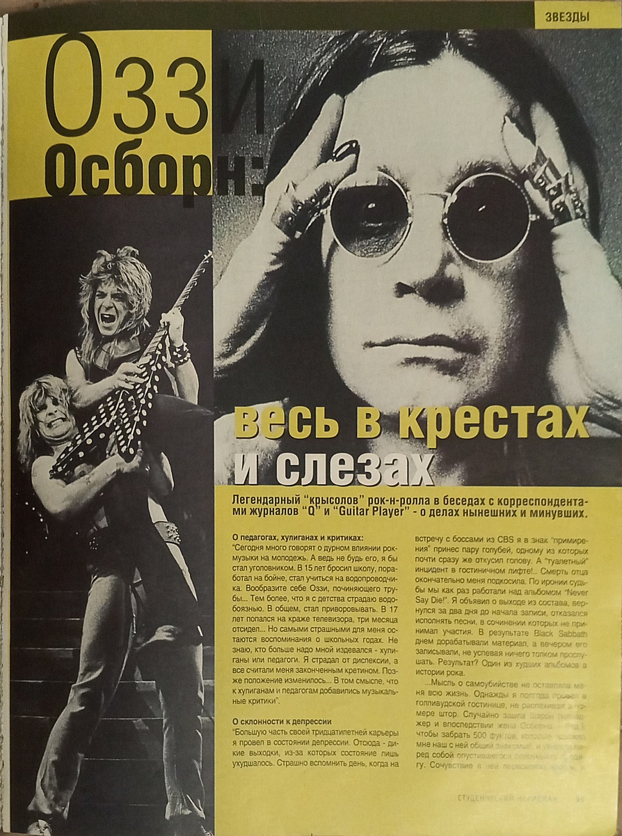 Памяти Оззи... Оззи Озборн Весь в крестах и слезах Студенческий меридиан январь 2002г.