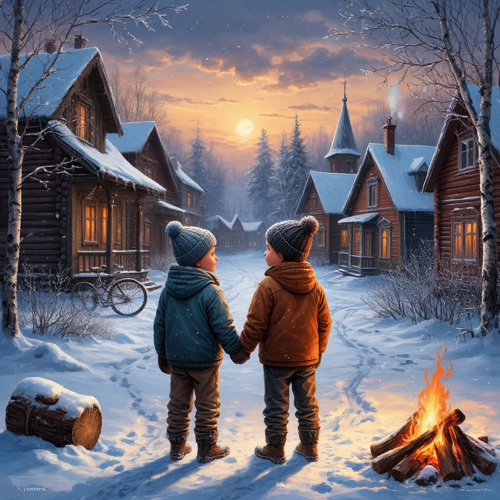 В маленьком северном городке, где зима длится дольше, чем лето, а снег ложится на крыши, словно белое покрывало, жили два мальчика — Айдар и Тимур. Их дружба началась однажды утром, когда солнце только-только коснулось инея на окнах, а город еще дремал в полусне. Айдар был мечтателем. Он любил смотреть на облака и придумывать истории о далеких странах, где нет зимы. Тимур был земным — он знал, как починить велосипед, как развести костер и как найти дорогу в лесу даже в самую густую метель. Они были разными, но именно это и сблизило их. Однажды, когда город готовился к Новому году, мальчики решили сделать подарок для всех — построить фонарь, который будет светить на главной площади. Они нашли старую лампу, почистили стекло, заменили фитиль. Айдар придумал, как украсить фонарь снежинками из бумаги, а Тимур закрепил его на высокой палке, чтобы свет был виден издалека. Вечером, когда на площади собрались люди, мальчики зажгли свой фонарь. Свет был мягким, теплым, он отражался в глазах пр