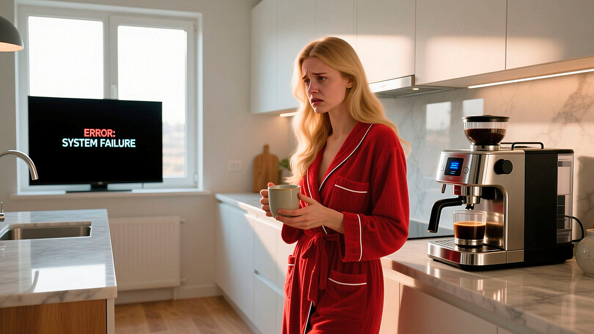 Оля стояла перед сияющей хромом панелью, замерев с керамической кружкой в руке. На сенсорном экране, где обычно возникало уютное изображение кофейного зерна, горел бездушный белый текст на черном фоне: «Лицензия истекла. Для продления обратитесь к владельцу аккаунта. Ошибка 451.»