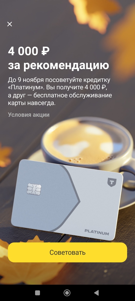 Вообще я не любитель, что то навязывать либо советовать другим людям, хотя сам много раз следовал рекомендациям, но лишь тогда когда это выгодно. Что касается моих рекомендаций, то в основном это было среди ближайшей родни, так я несколько раз рекомендовал продукты банков своей жене и наоборот, и в принципе удавалось на этом заработать. Так вот Тинькофф снова даёт возможность заработать. Суть такая же, я рекомендую продукт, в данном случае кредитная карта, вы получаете бесплатное обслуживание, а я 4000 рублей. Но, я решил немного доработать данную акцию и предложить свой личный бонус, точнее разделить мой бонус от банка между нами. Таким образом, вы получите кредитную карту с бесплатным обслуживанием + я отдам половину своего бонуса. Я переведу 2000 рублей на карту как только бонус поступит на мой счёт. Вот собственно суть предложения, опять таки не навязываю никому ничего, просто возможно кому то нужна кредитка, либо возможность получить на халяву 2000 рублей.