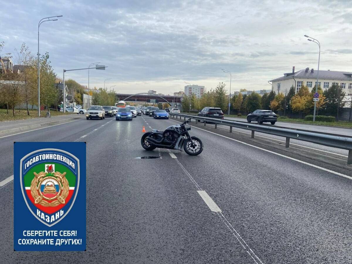 Мотоциклист упал с байка на проезжей части в Казани, его госпитализировали с травмами