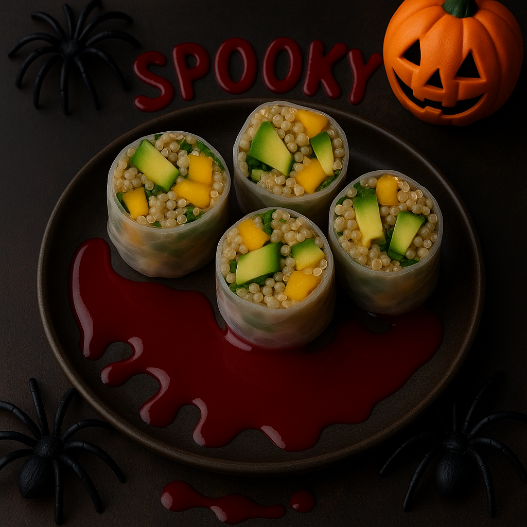 1. Роллы с киноа, авокадо и манго в рисовой бумаге