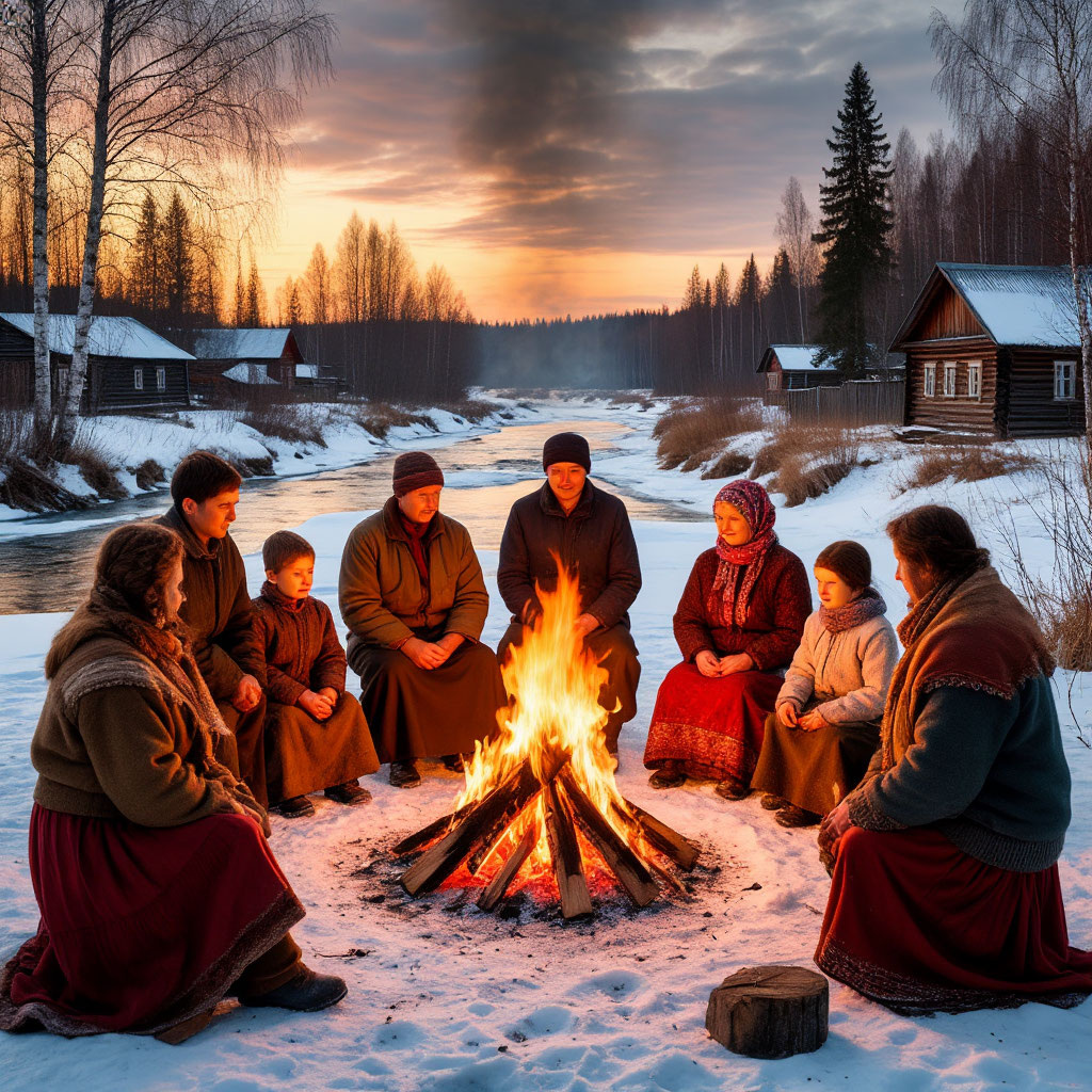 В старой северной деревне жила семья Уразаевых. Когда наступала весна и сходил снег, все жители собирались на реке — устраивали большой праздник, отмечая пробуждение природы. У каждого рода был свой костёр, за которым следили дети и старики. Это был древний обычай: пока костёр горит, роды помнят свои корни, а души предков приходят погреться к живому пламени. В то время в деревню приехал молодой учитель из города — Рамиль. Он привык к современным традициям и не понимал, с какой серьёзностью готовятся к празднику здесь: собирают сучья, старшие учат детей правильным словам и жестам, всем выдают разные роли, словно это спектакль, который нельзя нарушить. Рамиль решил, что может просто посмотреть — и ушёл на речку сам, построил невысокий костёр, сел рядом, думая о жизни и мечтах. Когда начался праздник, все заметили чужой огонь. Старейшина подошёл к Рамилю и спросил — кто он, чем пришёл делиться. Рамиль растерялся, признался: «Я не знал, что костёр — часть вашего рода. Я хотел просто согр