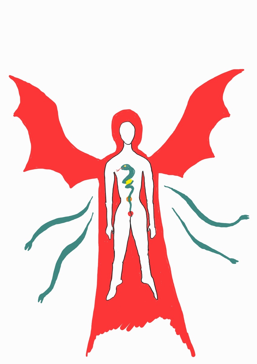 Когда мы начали сессию у меня сразу промелькнул странный образ-тень за его спиной - что-то большое с крыльями. Я не торопился с выводами, для меня было важно ЧТО в потоке покажут самому клиенту БЕЗ моих комментариев.
