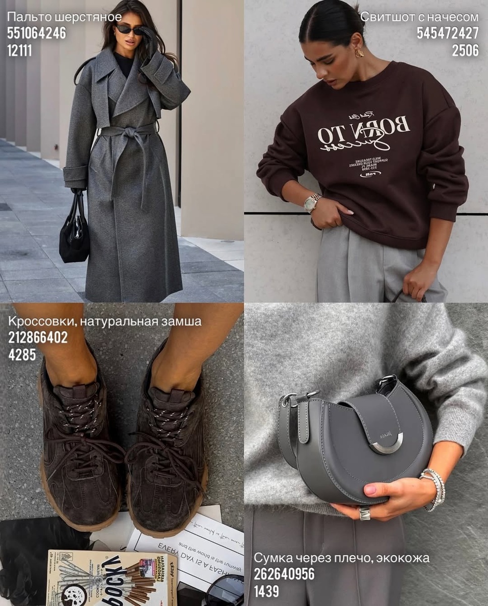 Зима любит благородные фактуры и спокойную палитру. В этой подборке — продуманная капсула в оттенках графита, тёплого какао и молочного. Все вещи легко комбинируются между собой: от шерстяного пальто до замшевых кроссовок и мягких вельветовых юбок. Ниже разберём каждую находку по порядку с артикулами, нюансами посадки и советами стилиста.