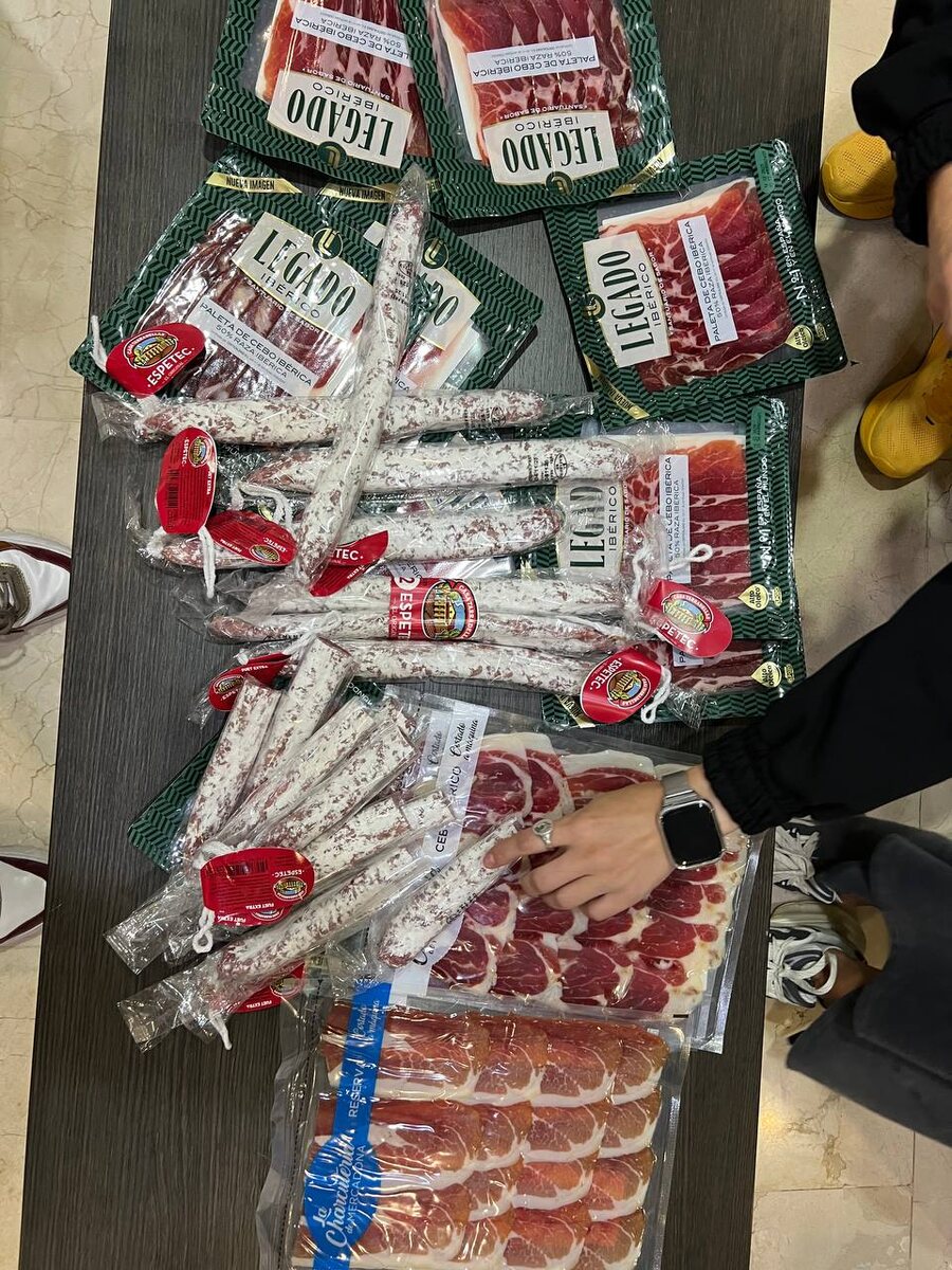 Самое главное — хамон с фуэтом благополучно долетели, никто колбасу не отобрал. Можно выдыхать. А теперь про всякие мелочи вроде меня. Я тоже долетела нормально. В аэропорту меня встретил трансфер с табличкой FitStars, усадил в красивую машинку и повёз по дождливым пробкам моё голодное, но стойкое тело — часа два в пути. Приехали на базу (именно базу, не отель — здесь всё по-спортивному). Заселились, поужинали и пошли на общий сбор. День сегодня скорее «разогревочный»: амбассадоры приезжали кто когда, поэтому тренировок не было. Все уставшие и мечтают, чтобы им выдали по хамону и отпустили спать. На собрании тренеры сказали приветственное слово, раздали мерч и поделили нас на команды. Всего четыре цвета: розовый (мой), фиолетовый, серый и голубой.